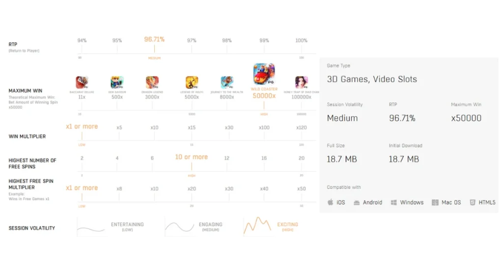สัญลักษณ์และอัตราจ่าย Wild Coaster